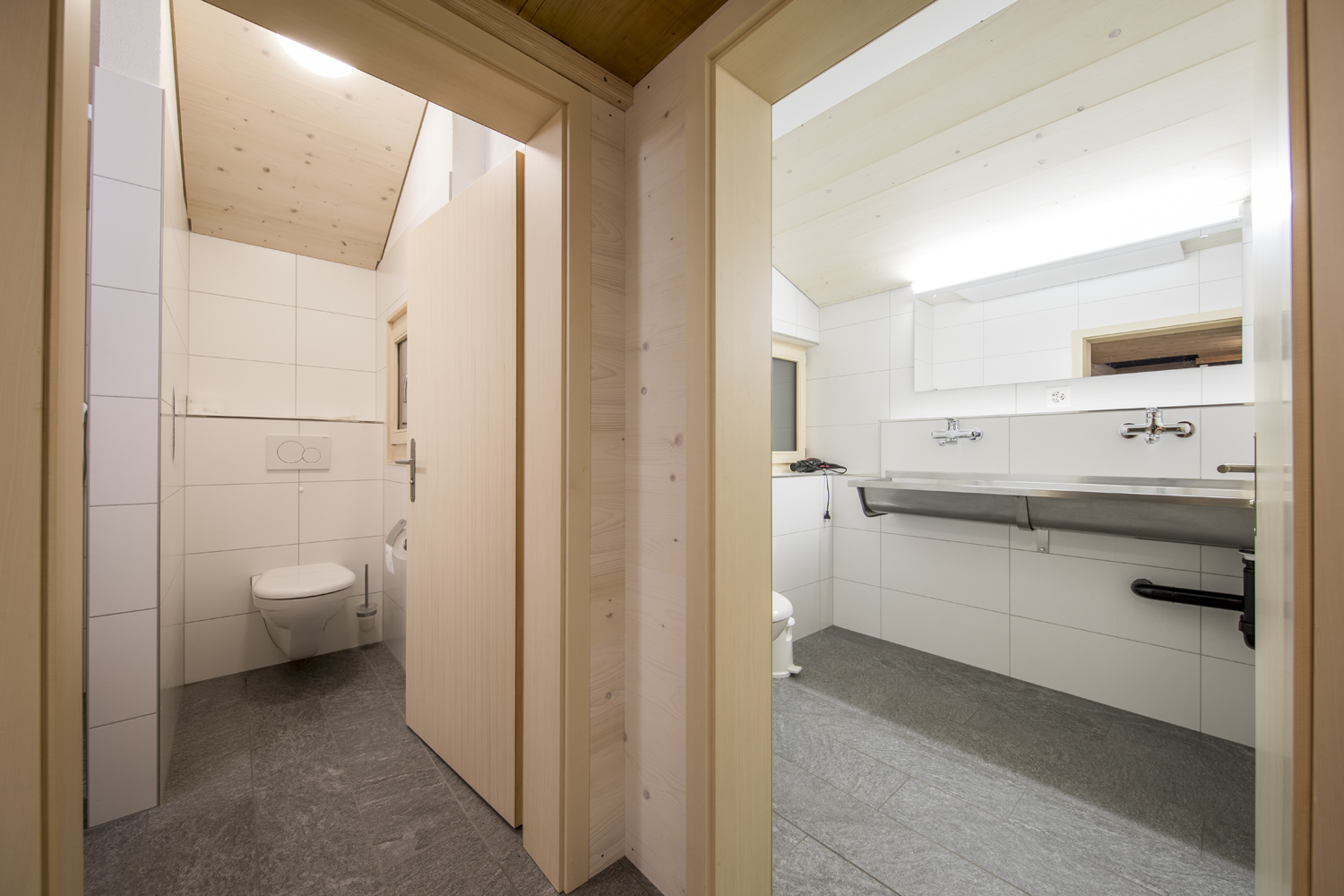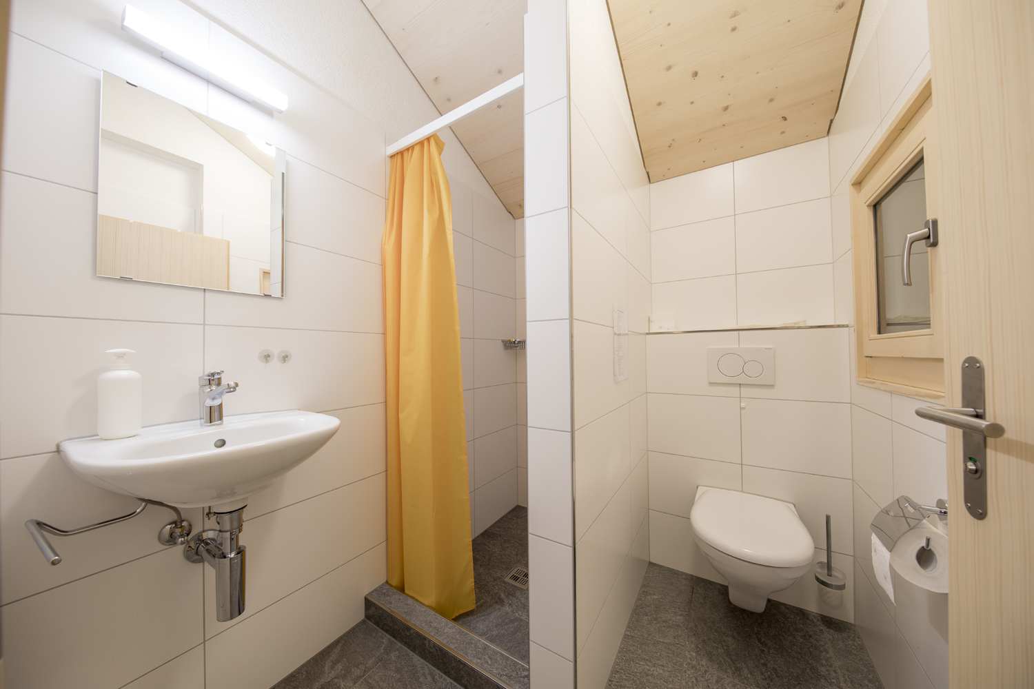 • Fliessendes Wasser warm/kalt, WC, Nasszellen (eine mit Dusche), Haarföhn.