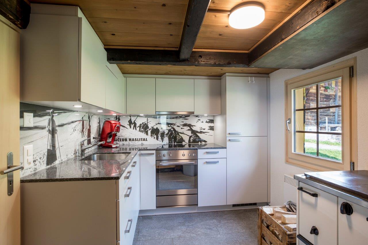 • Küche mit Holz- und Elektrokochherd, Backofen, Kühlschrank, Nespresso Kaffeemaschine. (Kapseln selbst mitbringen)